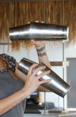 Jigger o medidor de bebidas en acero inoxidable.Vienen por dos medidas diferentes en la parte superior e inferior.Este es el modelo deluxe que es mas ..